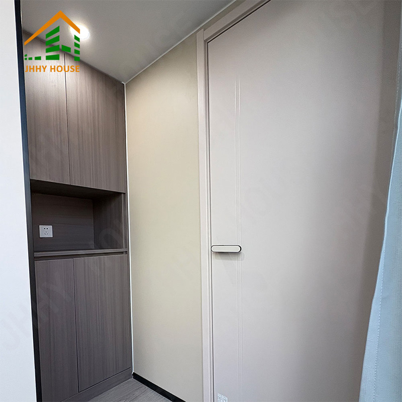 | Sistema de decoración de interiores | Techo suspendido (tablero OSB + tablero de fibra de carbono) Superficie de pared interior (tablero OSB + tablero de fibra de carbono) Tablero + tablero de fibra de carbono) Suelo interior (suelo con sistema de bloqueo SPc) Sistemas de calefacción por suelo radiante Puerta del baño (puerta corrediza de vidrio para mayor privacidad) Lavabo (mármol a medida) Paredes del baño (tablero de bloqueo SPC) Suelo del baño (baldosas) Muebles como camas, mesitas de noche, sofás, etc. (se pueden personalizar). |