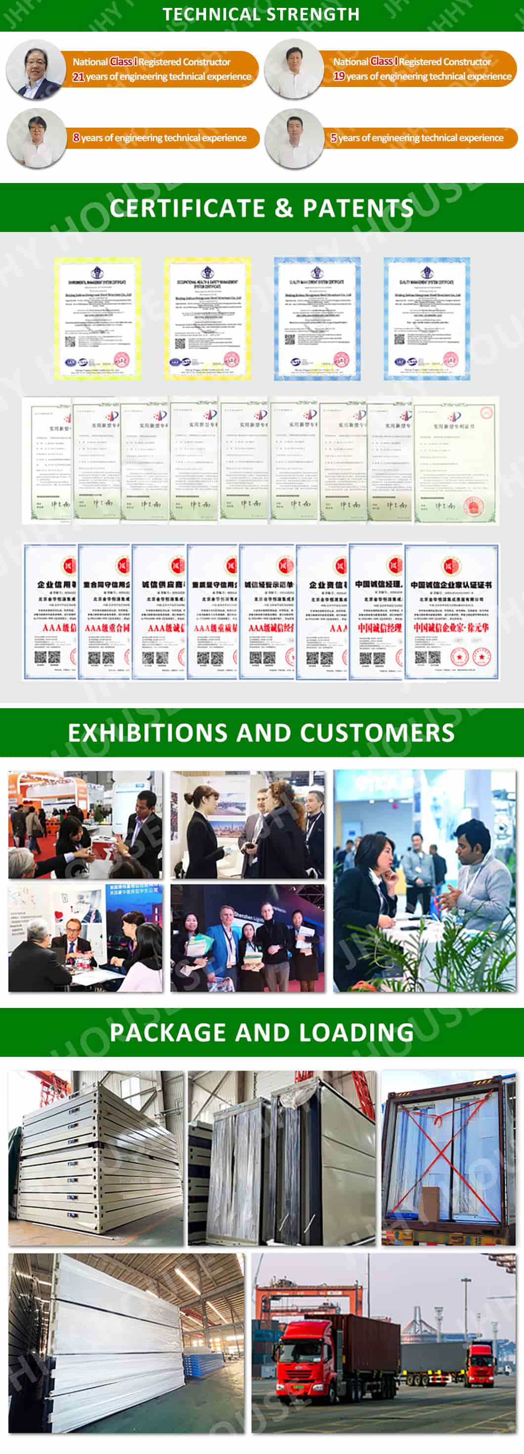 Fundada en 2001, es un proveedor integral de servicios de producción especializado en la industria de la construcción prefabricada, con enfoque en brindar soluciones integrales para el diseño y la personalización de casas modulares, la venta y el arrendamiento, la I+D y la producción, el transporte y la instalación, y el servicio posventa. Es una de las empresas fundadoras de la industria nacional de la construcción prefabricada y una gran empresa de alta tecnología. El Grupo Jinhua Hengyuan cuenta con seis filiales y cuatro modernas plantas de fabricación de más de 60.000 metros cuadrados. Es uno de los mayores fabricantes de casas contenedor en China, con una producción acumulada superior a los mil millones. A lo largo de los años, ha obtenido 31 patentes técnicas nacionales y ha participado en el diseño y la construcción de las sedes de los Juegos Olímpicos de Invierno de Pekín 2022, que la Televisión Central de China calificó como "la construcción temporal más hermosa en la cima de Genting". Los productos se venden en todo el país y se exportan a América del Norte, América del Sur, Europa y países asiáticos durante todo el año, principalmente incluidos Estados Unidos, Canadá, Gran Bretaña, Brasil, Perú, Argentina, Mongolia Exterior, Arabia Saudita, Congo, Rusia y otros países, cubriendo la construcción temporal de importantes sitios de construcción en el país y en el extranjero y campos no relacionados con la ingeniería como la industria, el comercio, la agricultura, el turismo, la educación, la atención médica, los asuntos militares y los campamentos. |